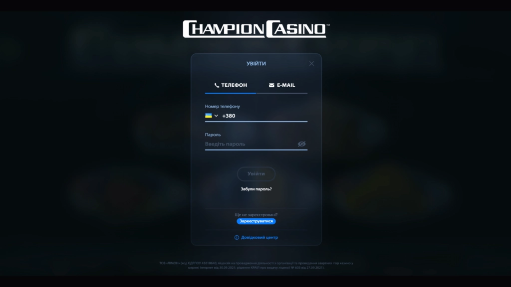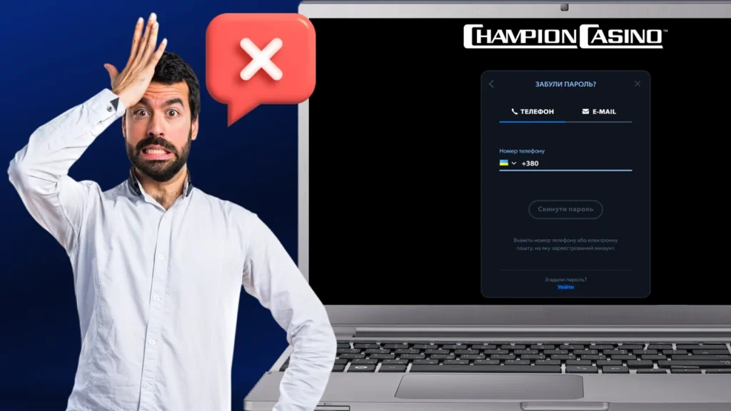 Якщо ви забули пароль, відновлення в Сhampion casino проходить просто: